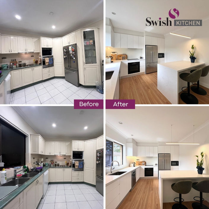 At Swish Kitchen, we specialise in custom kitchen renovations for houses, units, and apartments across Sydney. Our before-and-after gallery showcases real projects — from outdated layouts to stunning modern spaces. Discover how we combine clever design, smart storage, and beautiful finishes to transform kitchens into functional, stylish hubs of the home.